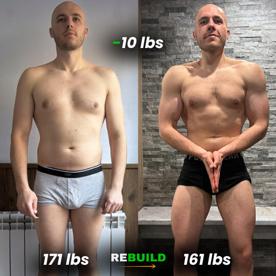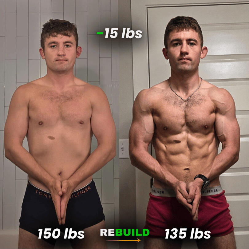 Fast forward to today, I’ve built and now maintain my dream physique year-round. All while working 70+ hours per week and, eating out on a regular basis.That is why I founded the Rebuild Method! To teach high-achieving men how to build an impressive physique & become healthier individuals, without sacrificing their career, family or social lives.This approach changed my life, and it can change yours too.