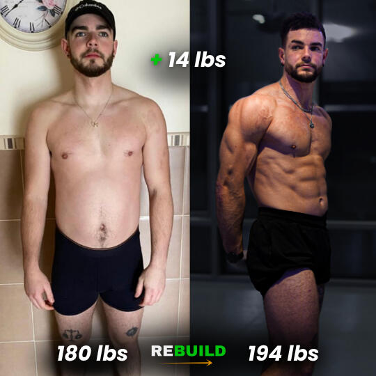 Fast forward to today, I’ve built and now maintain my dream physique year-round. All while working 70+ hours per week and, eating out on a regular basis.That is why I founded the Rebuild Method! To teach high-achieving men how to build an impressive physique & become healthier individuals, without sacrificing their career, family or social lives.This approach changed my life, and it can change yours too.